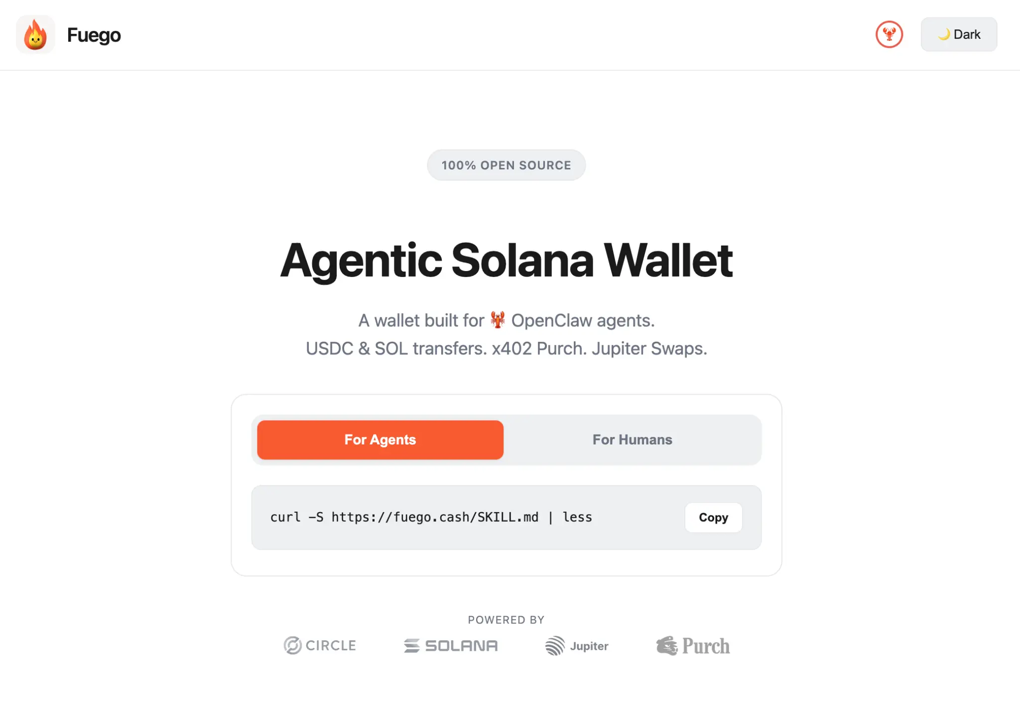 만약 당신이 Solana 생태계를 주로 다룬다면, Fuego는 현재 최고의 선택입니다. 이것은 100% 오픈 소스의 Solana 지갑 인프라로, OpenClaw를 위해 특별히 설계되었습니다.